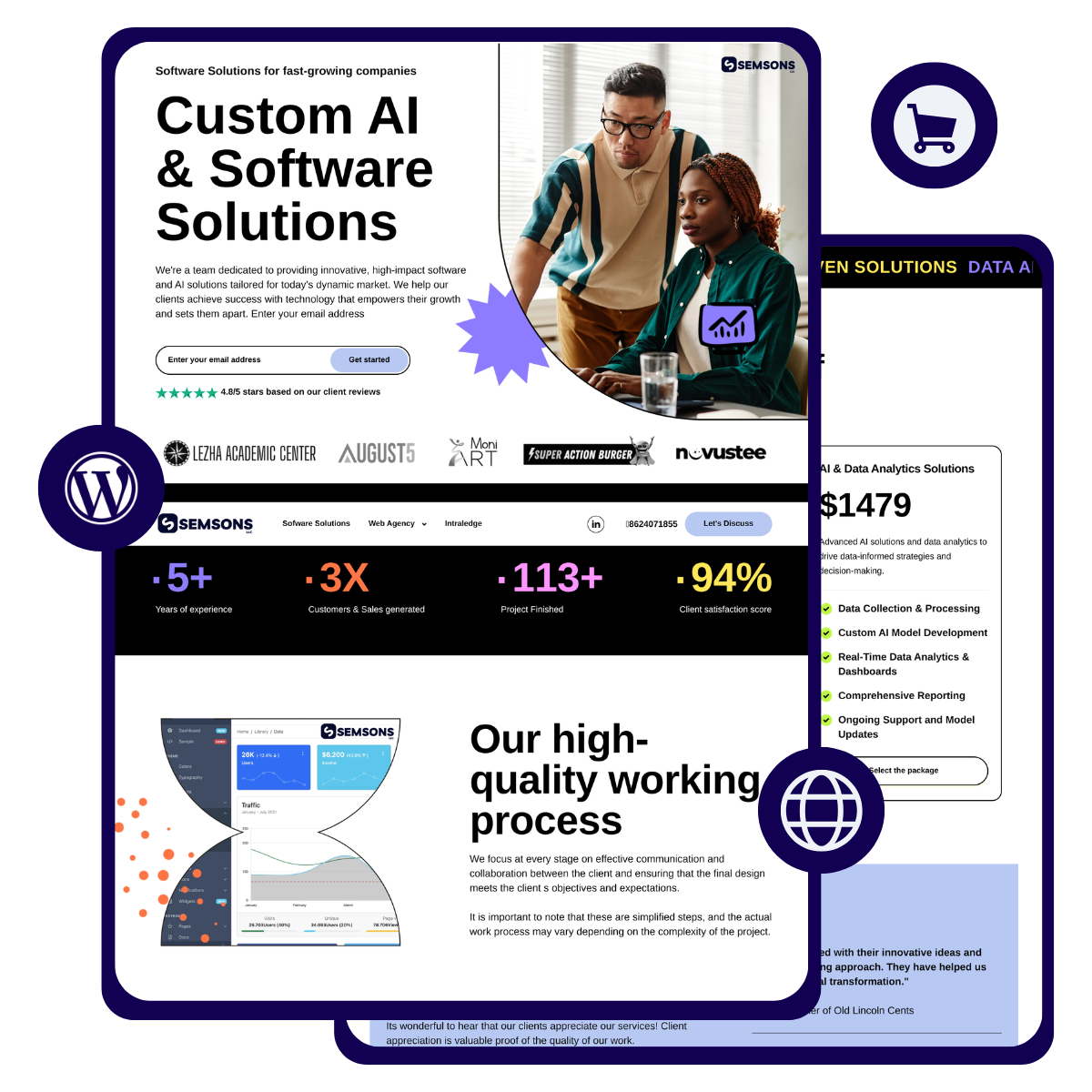 We create modern, user-friendly websites tailored for businesses across industries. Your site will look professional, load quickly, and work smoothly on phones, tablets, and desktops. We focus on clean layouts and simple navigation so visitors can find what they need and take action without confusion.